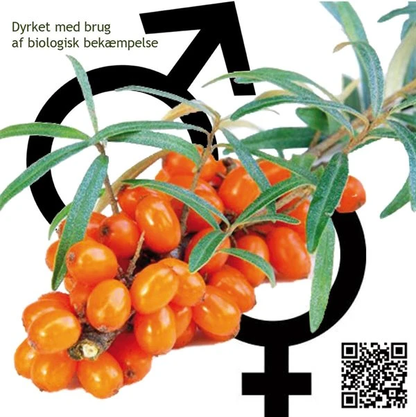 Havtorn (Hippophae `Leikora + Pollmix`) er en hun og han plante pottet sammen i en potte.